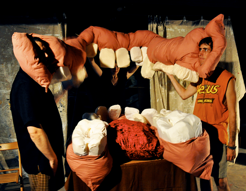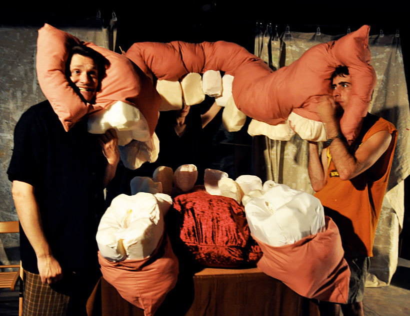 I designed and constructed a large “mouth puppet” shown here for Dan.