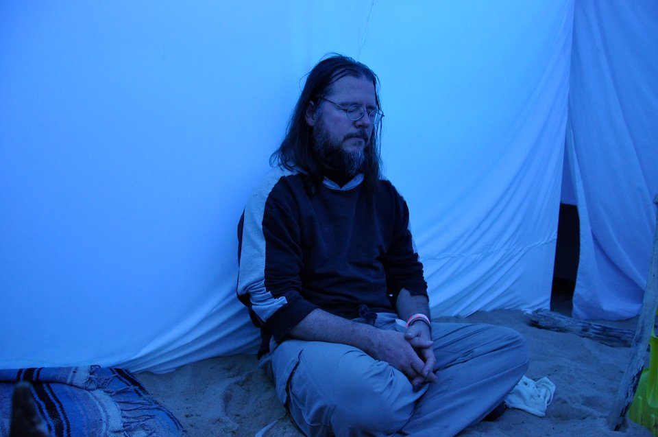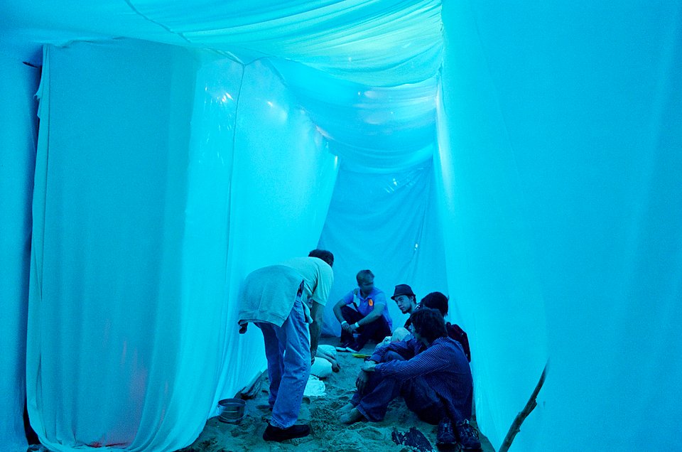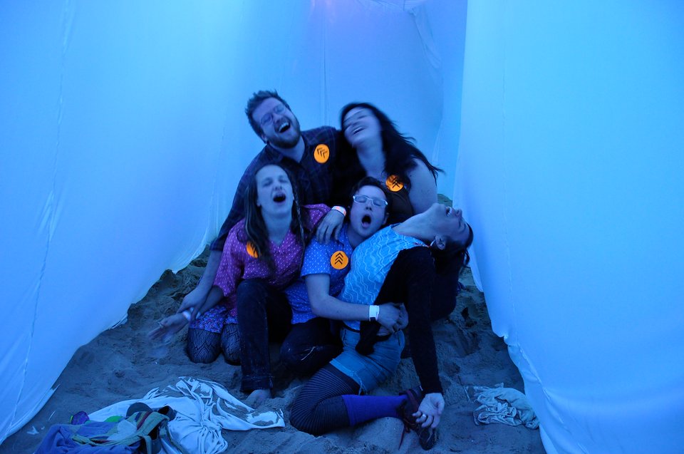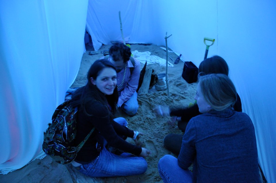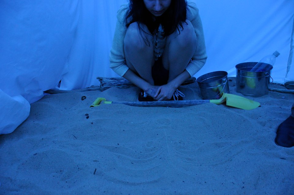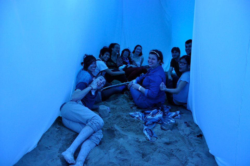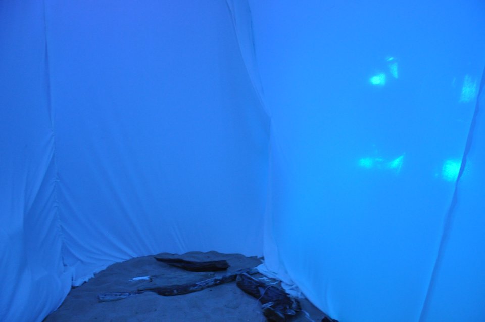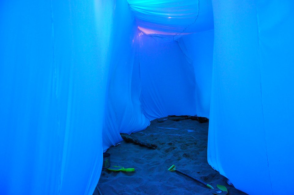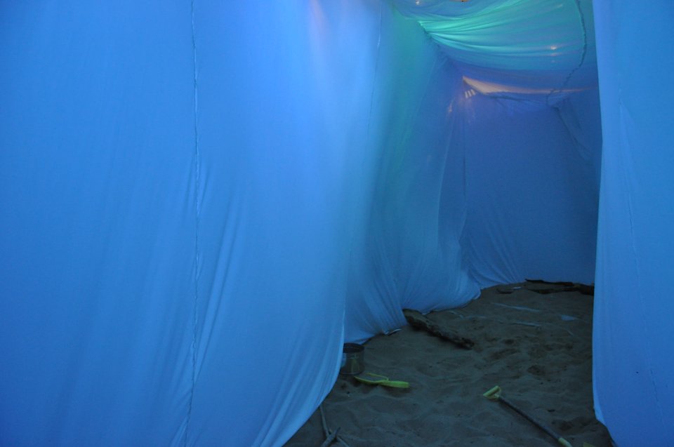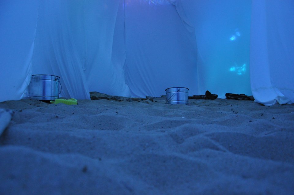 It was constructed out of lights, gels, sheer white fabric, 2 tons of beach sand. Throughout the 2 week event, I led over 600 visitors into the space. where they heard music I developed with sound musician John Somers, inspired by Sun Ra and the beach at dusk.