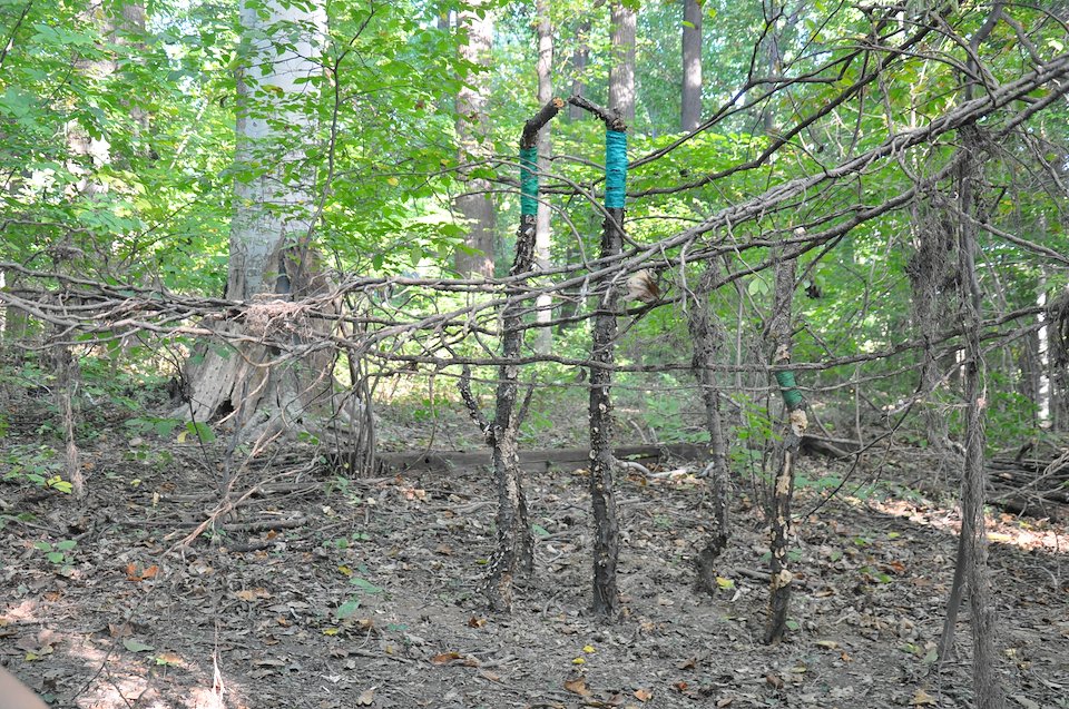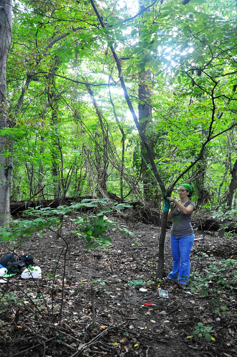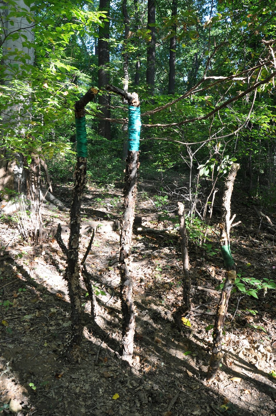 Comeupance! is a collaborative installation made of natural found materials with artist Melissa Webb in “the woods” (a grand large park – Leakin Park- in Baltimore, Maryland). It is an ongoing project. We started in August 2011- October 2011. An opening for the piece at one stage and closing for the show (Nature Art in the Park) was October 9th, 2011