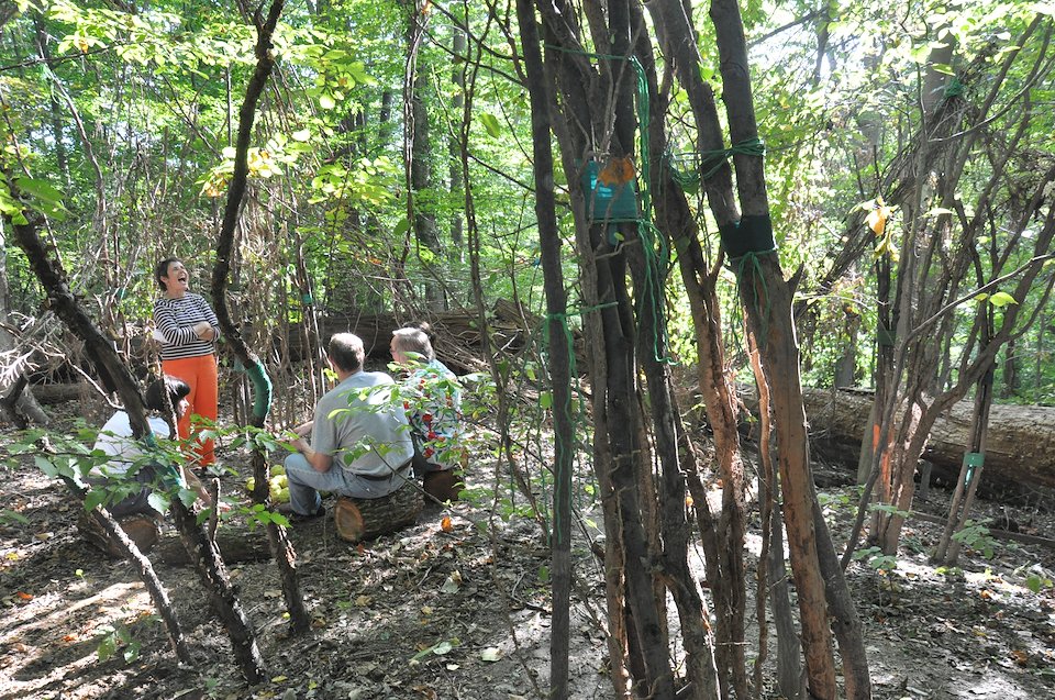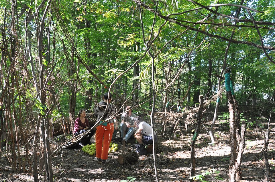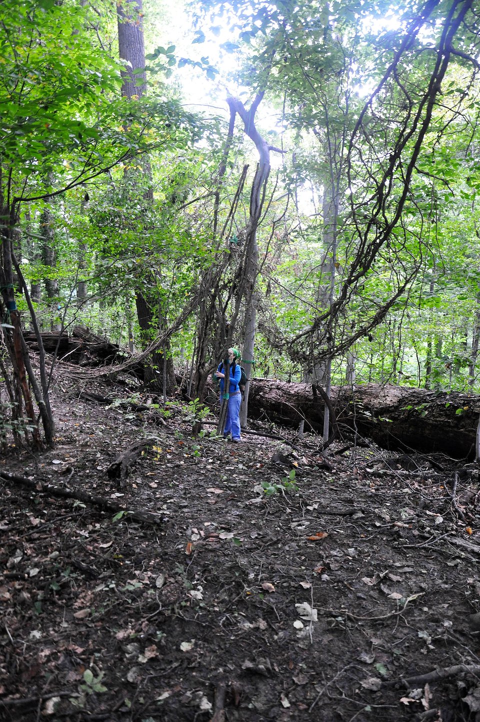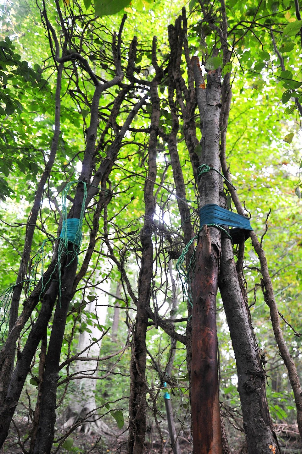 Comeupance! is a collaborative installation made of natural found materials with artist Melissa Webb in “the woods” (a grand large park – Leakin Park- in Baltimore, Maryland). It is an ongoing project. We started in August 2011- October 2011. An opening for the piece at one stage and closing for the show (Nature Art in the Park) was October 9th, 2011