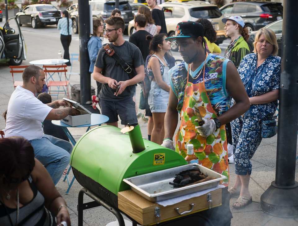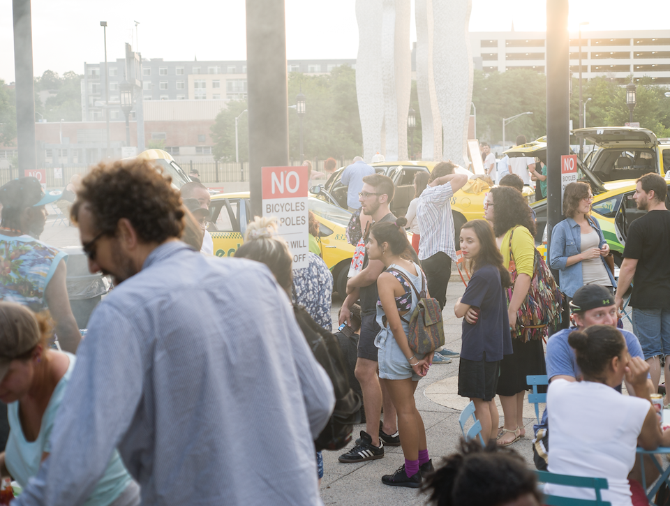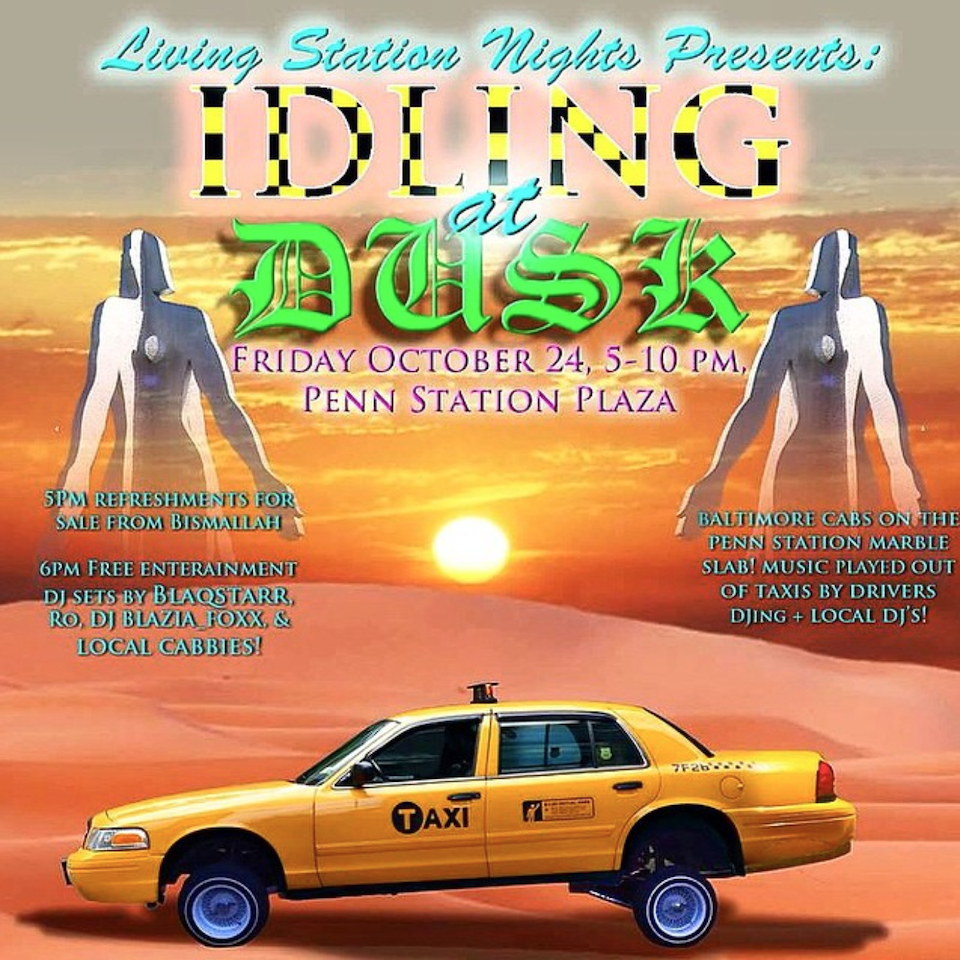 Event description: I synced cab sound systems to play music that cab drivers themselves DJ alongside local legendary Bmore club music DJs. Cab drivers were primarily middle aged Muslim immigrants with a variety of musical tastes. The project aims to celebrate those who occupy the plaza daily, combat Islamophobia, connect different local musicians and local people/businesses while activating the plaza.