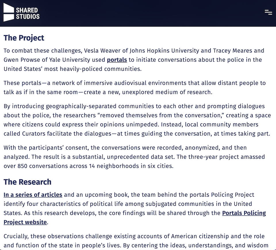 I was also on a select team of curators gathered internationally to conduct participatory action research for an IRB approved study for criminal justice researchers at Yale University’s law center. The principal investigators include Tracey Meares and Vesla Weaver.