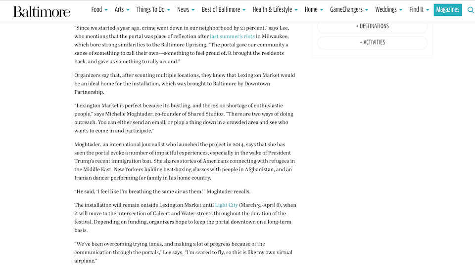 I worked with dozens of small to large scale institutions and community groups to create engaging events. I brought people off the street into the portal to engage with strangers on the other side and coordinated with curators from around the world to generate connections between our communities.